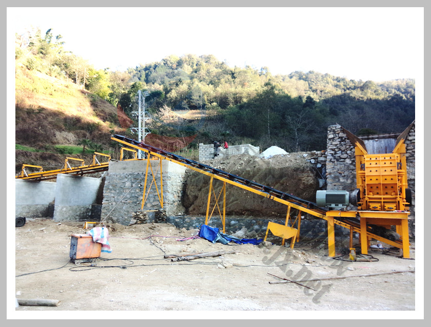 云南保山龍陵陳總一條皮帶輸送鏈接二合一破碎機(jī),機(jī)昆明安寧施總有著多年石料場生產(chǎn)經(jīng)驗(yàn),針對(duì)物料磨損含鎂的情況,經(jīng)過多個(gè)破碎機(jī)生產(chǎn)廠家的考察,最終確定選擇云南中天最先進(jìn)的二合一高轉(zhuǎn)速反擊式破碎機(jī)。該套生產(chǎn)線根據(jù)地形情況,選擇了二合一配振動(dòng)篩的設(shè)計(jì)方案,使用下來,磨損情況大大降低,預(yù)計(jì)每小時(shí)生產(chǎn)80噸,實(shí)際用下來接近每小時(shí)120噸,遠(yuǎn)遠(yuǎn)超出來客戶的預(yù)想!
